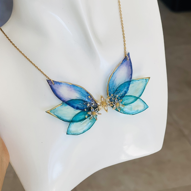 Dans l’univers d’Aquarelia Faeria, chaque bijou naît d’un souffle de magie et d’un pinceau trempé dans l’eau et la lumière. Ici, les ailes de fée prennent vie grâce à l’aquarelle : légères, translucides, vibrantes, comme capturées en plein vol.