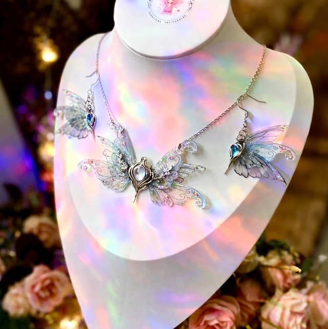 « Cristaux de jouvence, la déesse » Parure d’exception, aux ailes semi flexibles.